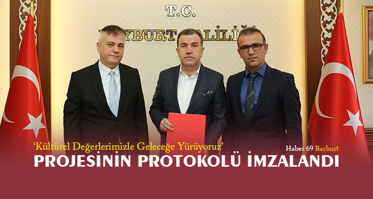 ‘Kültürel Değerlerimizle Geleceğe Yürüyoruz’ adlı projenin protokolü, Vali Mustafa Eldivan ile Bayburt Tarih Kültür ve Edebiyat Derneği (BAYDER) Başkanı Fatih Dündar arasında gerçekleşti.